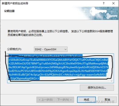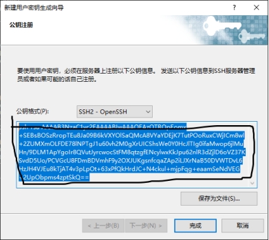 选择是,密钥就生成成功了,然后我们把公钥复制,点击完成。、