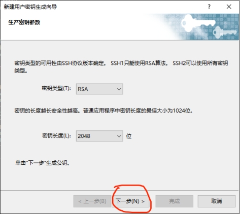 点击下一步后,等待密钥对生成,生成成功后,点击下一步