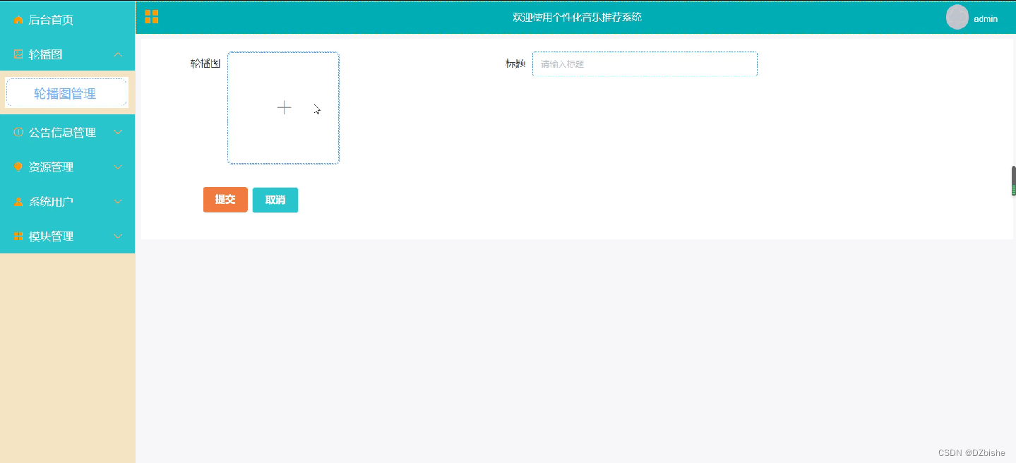 轮播图管理:管理员可添加轮播图信息进行发布至前台展示,还可根据需要进行增删改查等操作,如图5-5 5-6所示