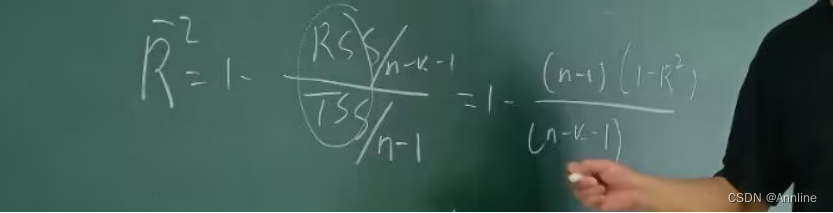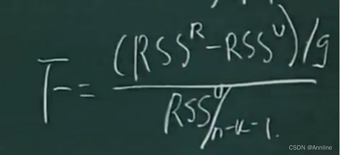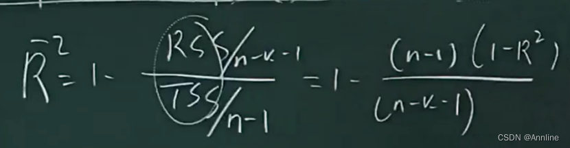 Residual sum of squares (RSS) 残差平方和 n-k-1