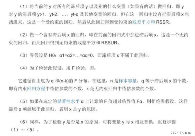 i.e., X does not Granger-cause Y. We can use the F test for the above null hypothesis.