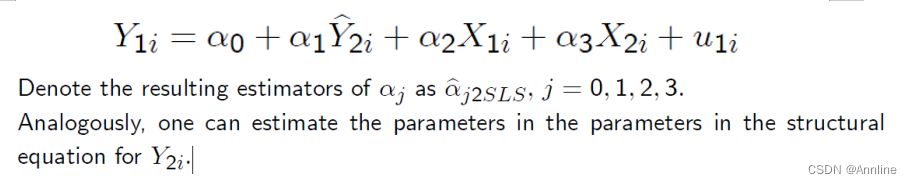 Y1i = α0 + α1Y2i + α2X1i + α3X2i + ε1i,