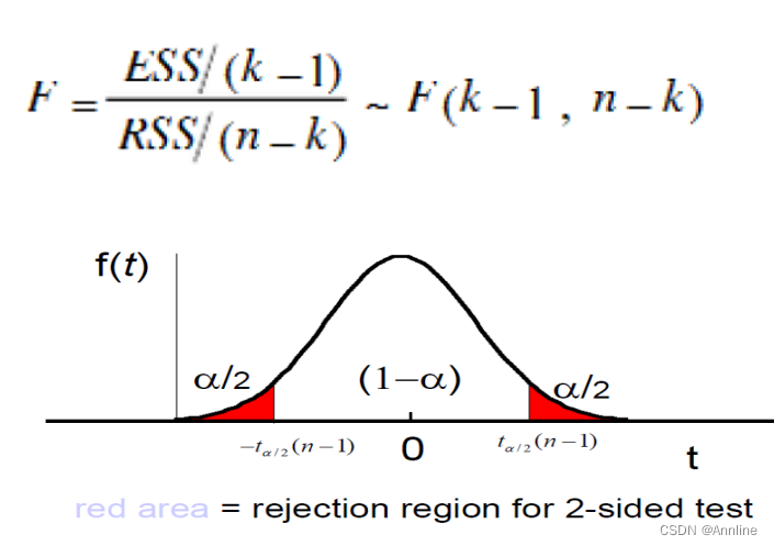 怎么算:算参数的置信区间(看是否包含0)、算t值(把贝塔=0带进去,看t在哪个范围,是否大于1.96 若是则处于拒绝域