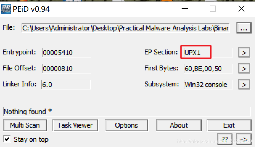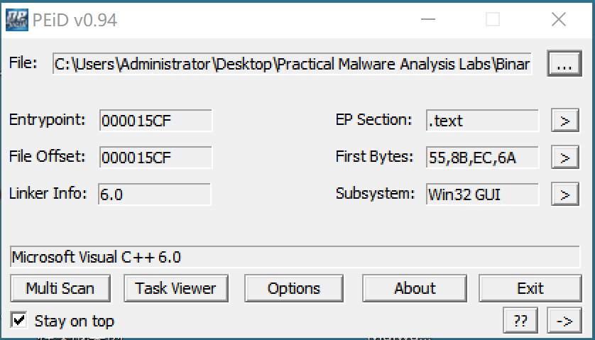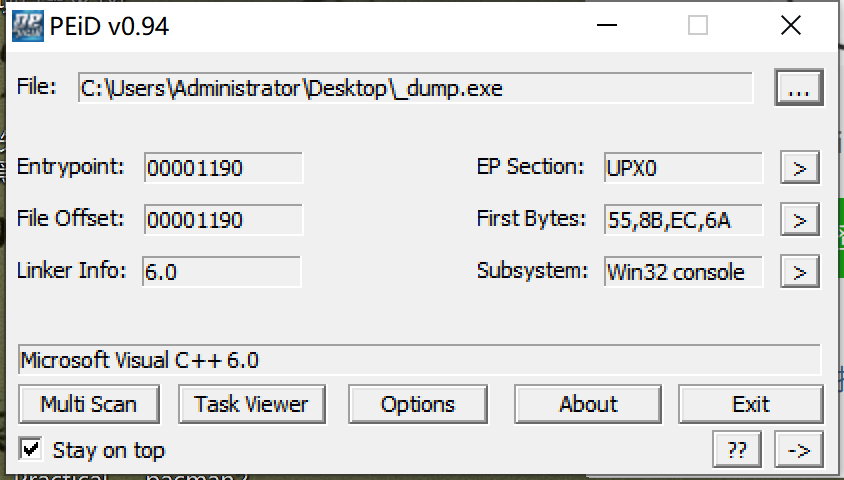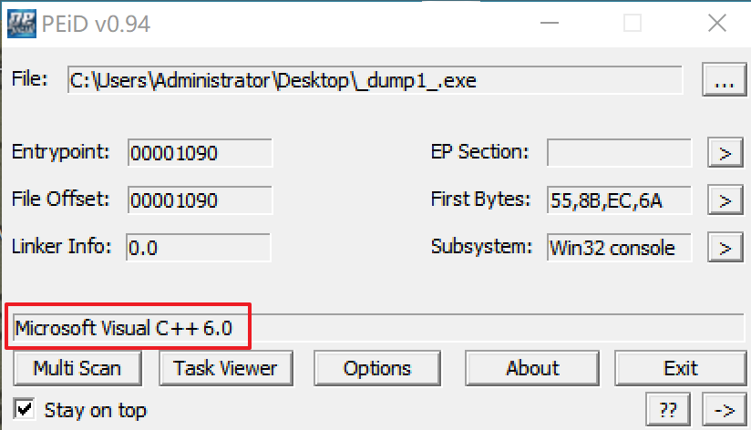 脱完壳后查看一下PEID发现同样是VC++6.0编写的: