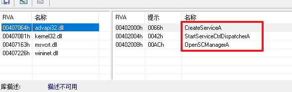 推测其可能会与网络相关,并且可能会有修改注册表或者注册服务等行为。