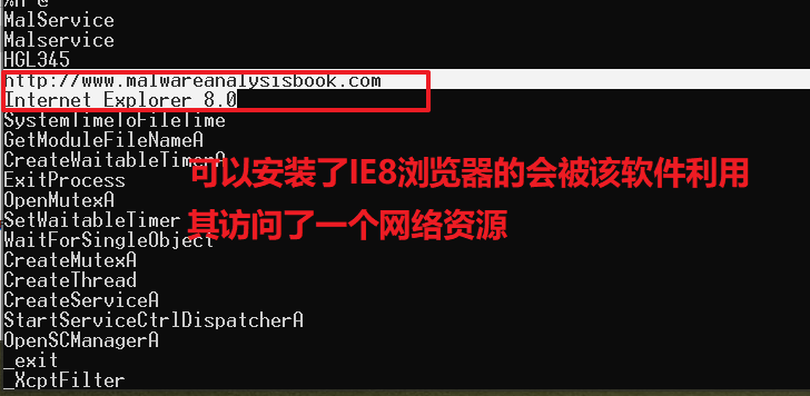 使用strings工具查看一下恶意代码内部的字符串。发现如下: