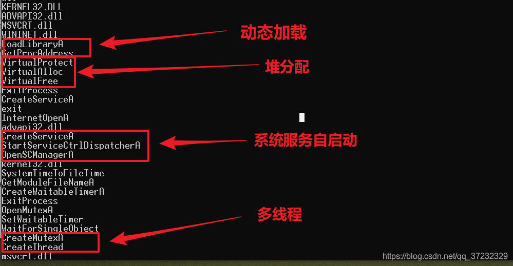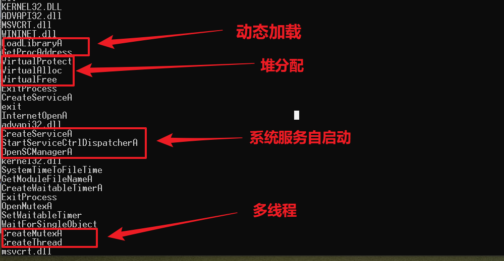 果然如此。但是令我最好奇的还是一点。分明导入表没有对应的dll被导入。为了会最终动态加载了那么多的库?