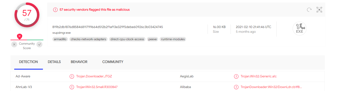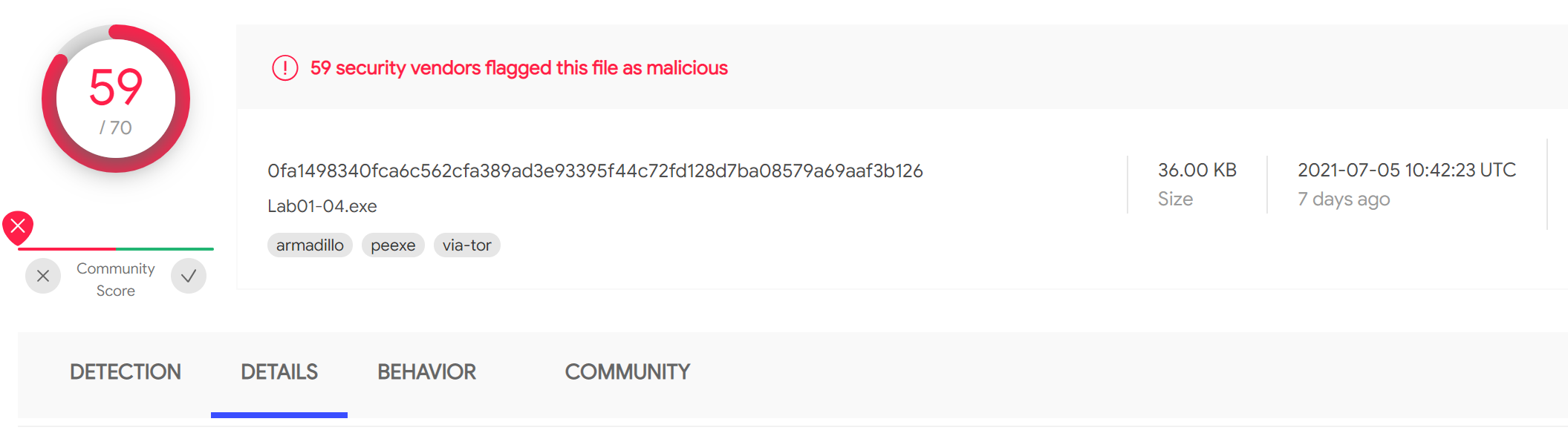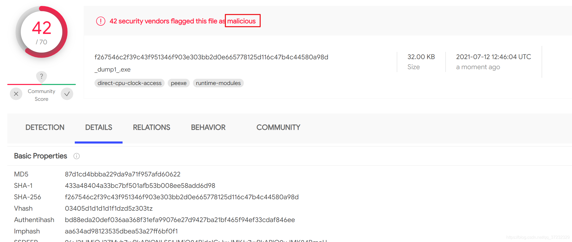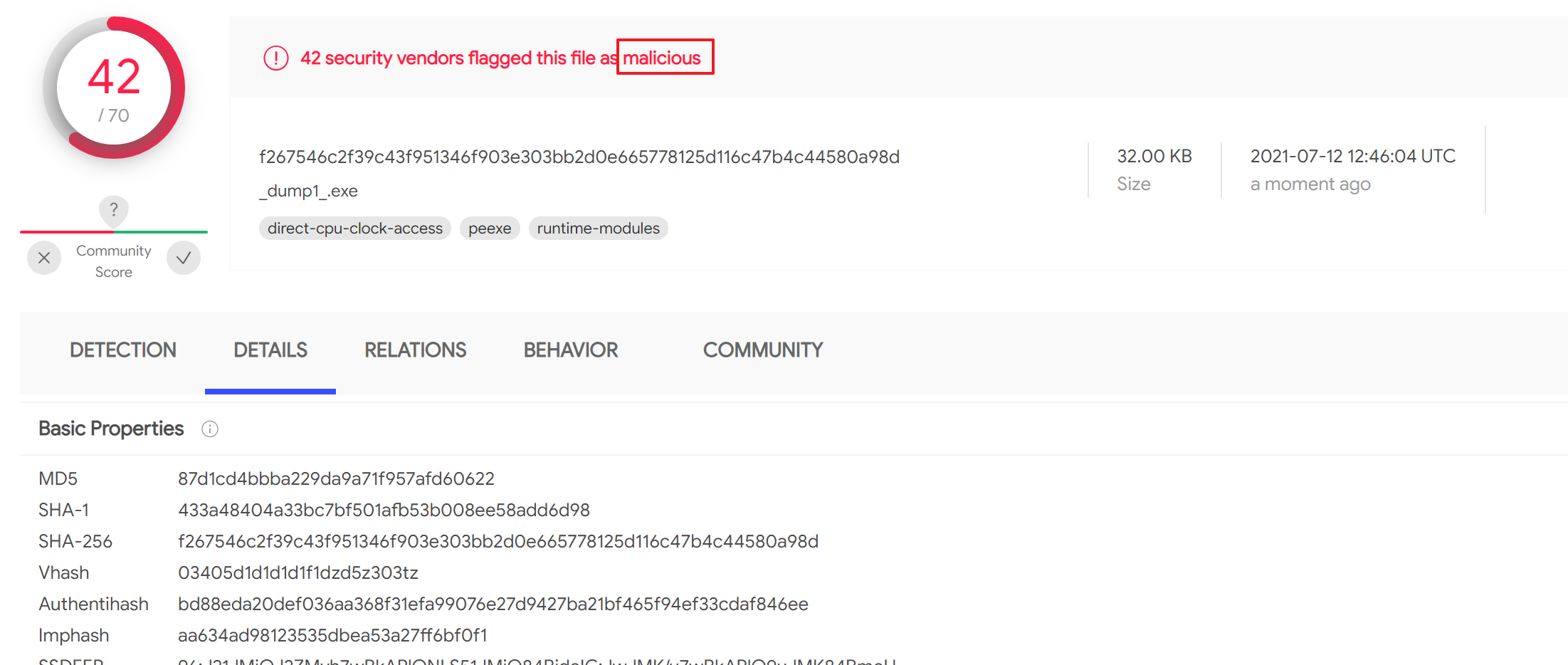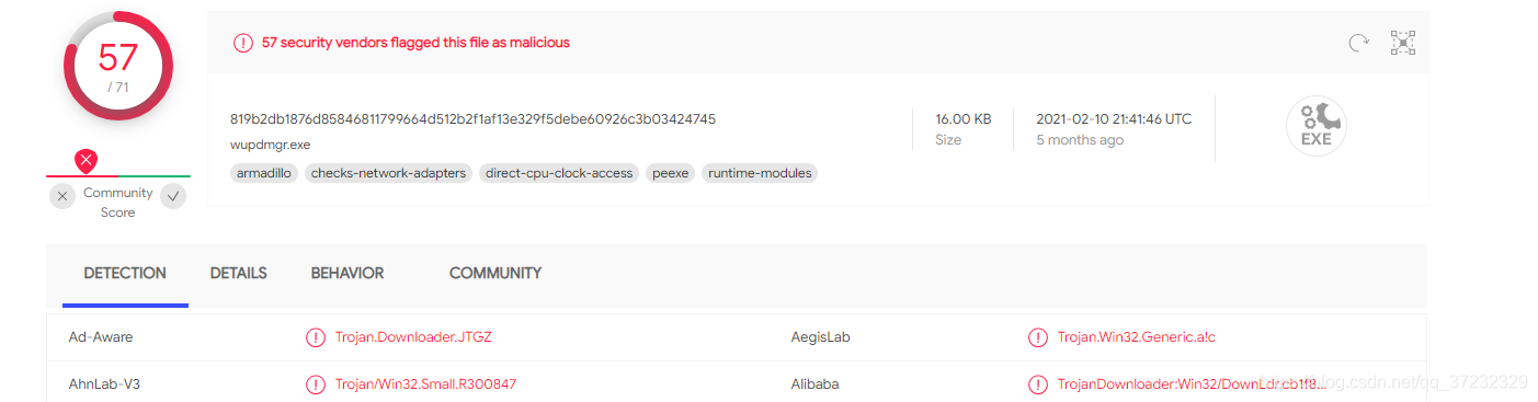 将其拖到VirusTotal上分析。发现有恶意行为: