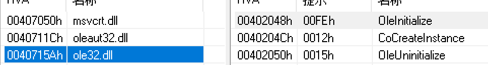 但是看一下它的导入表,倒是非常干净,没有任何恶意行为使用了com组件: