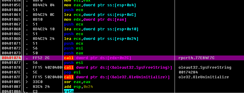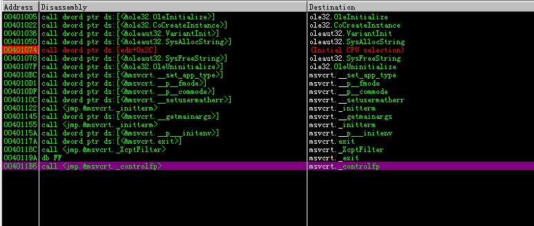 怎么想都感觉问题出在那个com组件上。由于我对com组件并不了解。在我逆向时非常小心翼翼,我发现当其在调用下面这个call前,模块间调用还是正常的:
