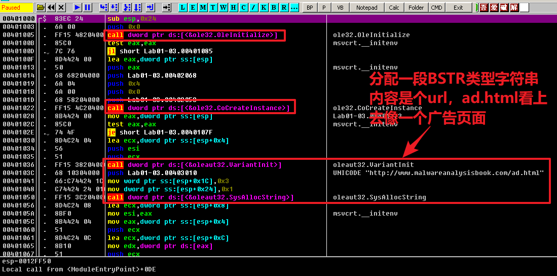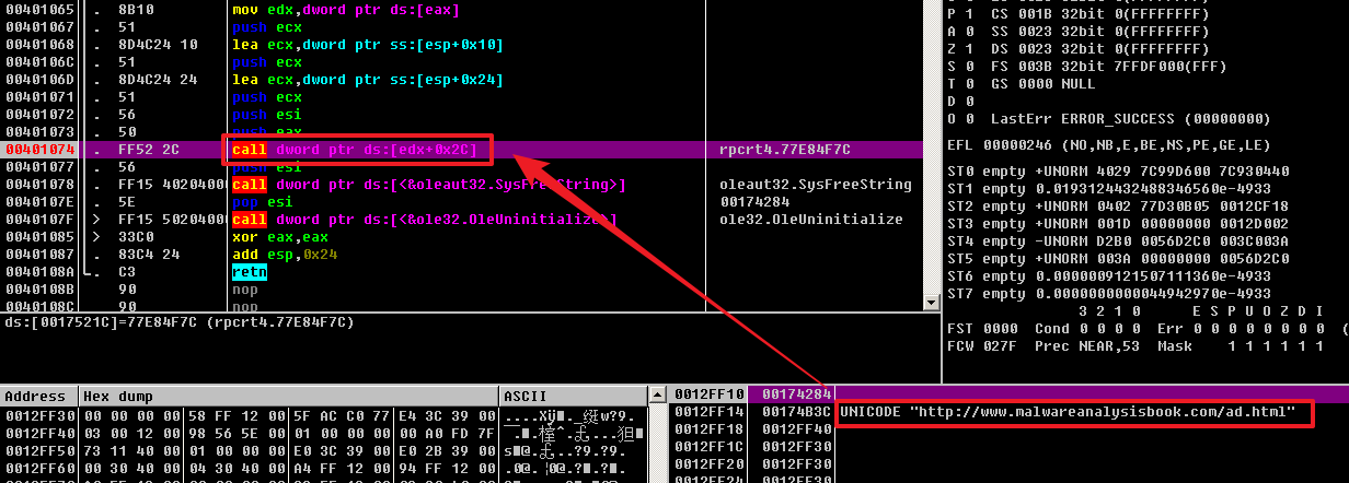 发现其与IE浏览器相关。 在继续分析, 它下面分配一个字符串是一个网页: