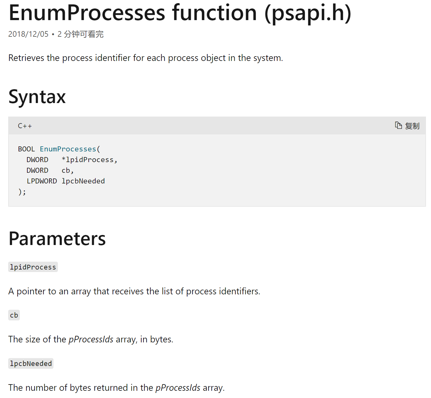 来看看其函数功能, 其能够获取当前系统中存活的进程PID的数组: