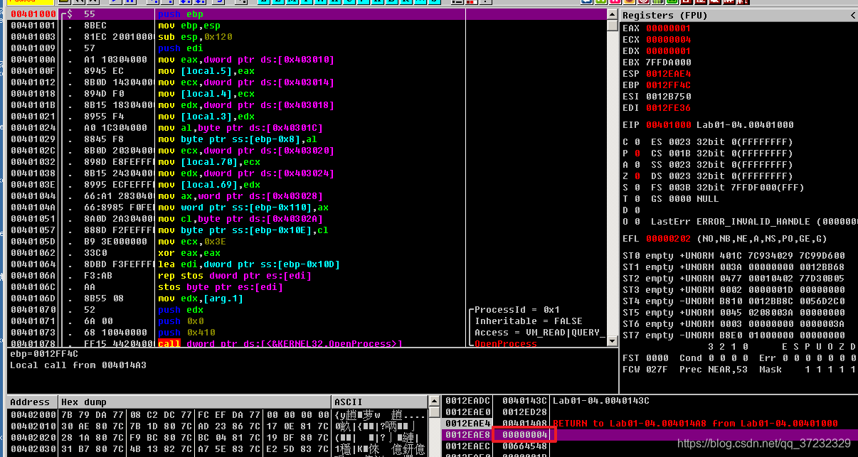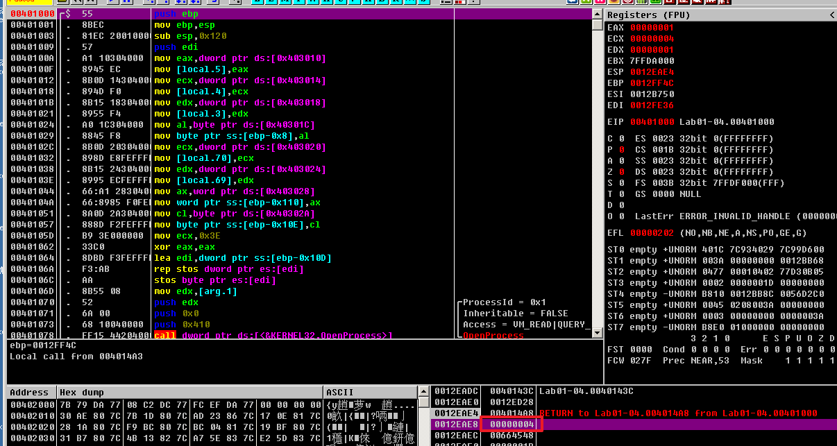 毫不奇怪, EnumProcesses第一个枚举到的PID肯定是System进程的PID为4