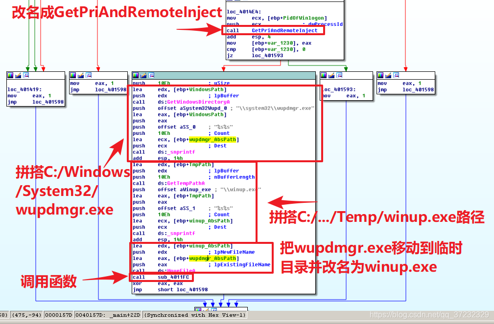 进行注入后把系统目录下的wupdmgr.exe移动到临时目录并改名为winup.exe后就进入了另一个新函数