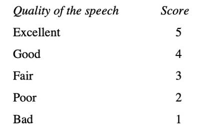 有些人可能觉得这个标准好简单,不就是1-5分的打分么?可是事实上并不是,主观的质量评价要想成为可重复使用的评价标准是很难的。不同环境、心情、知识储备、职业、听力范围及灵敏度等等背景的人都可能会对同一个声音给予不同的评分,甚至一个人在不同时间和背景下对于同一段语音质量,也会给予不同的主观评分。所以光有一个MOS评分是远远不够的,在标准里面还推荐了多种可行的测试方案,比如在Listening-opinion tests测试方案中给出了"Absolute Category Rating" (ACR) 。里面规定用短分组的不相关的句子测试,并且这些句子是通过一系列标准测试验证过的,然后在相同的测试方案下,相同的物理条件和传输系统下,来对比测试的结果。这样测试方案就具备较高程度的结果一致性。而这里说的物理条件包含非常的细致,例如测试线材、噪声(底噪;环境噪