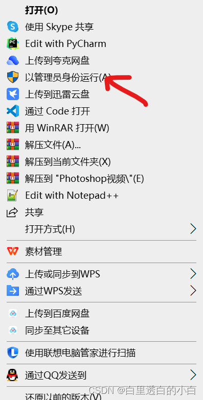 打开一个文件,右键,出现“以管理员身份运行”表示成功了!