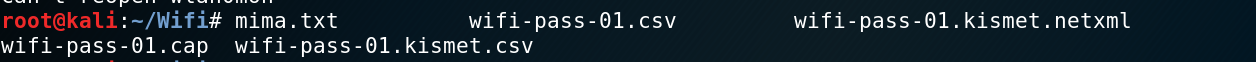 破解密码采用的是暴力破解方法。这里为了节省时间,我将自己wifi密码写入了一个txt文档中,命名“mima.txt”,保证最快速的找到密码。此时当前路径下的文件如下: