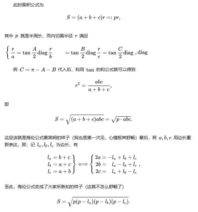 - 海伦公式,从三个顶点得到三边长,并使用海伦公司计算出面积;