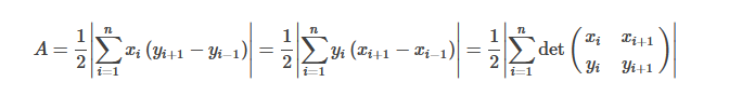 - 鞋带公式,用于计算任意多边形的面积,可用于计算三角形的面积;
