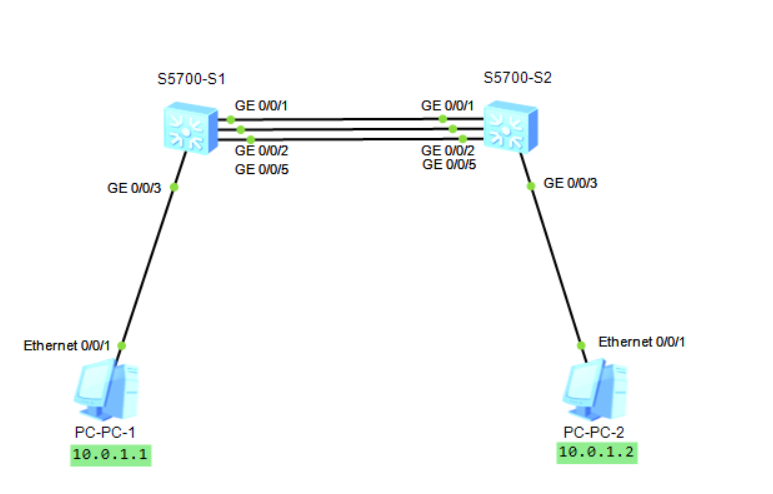想要实质性的增加S1和S2之间的带宽,单靠增加链路数量是不行的。因为生成树会阻塞多余的接口,所以现在的情况是,S1好S2之间的数据依然是仅仅通过GE0/0/1接口进行传输的。