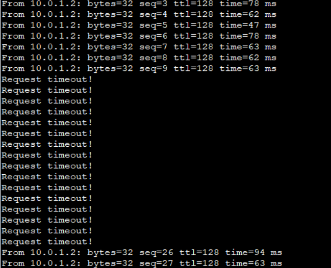 使用display stp brief 命令查看生成树状态,并使用ping命令持续测试,将S2的GE0/0/1或GE0/0/2接口关闭模拟故障的发生。