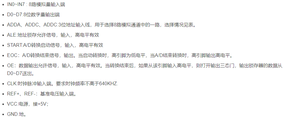 ·EOC:AD转换信号结束标志,连接发光二极管用来判断转换标志