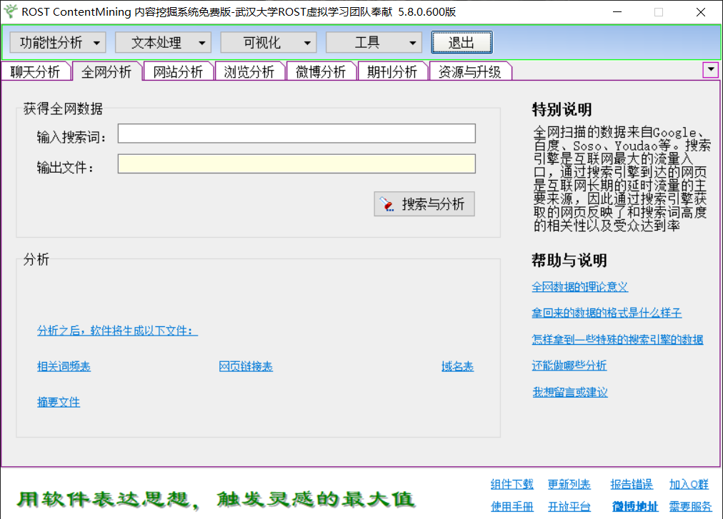 武汉大学研发的ROSTCM6,优点:1.简单方便的进行情感分类,可以分为正面、负面、中性三种情感。2.可以及逆行词频统计
