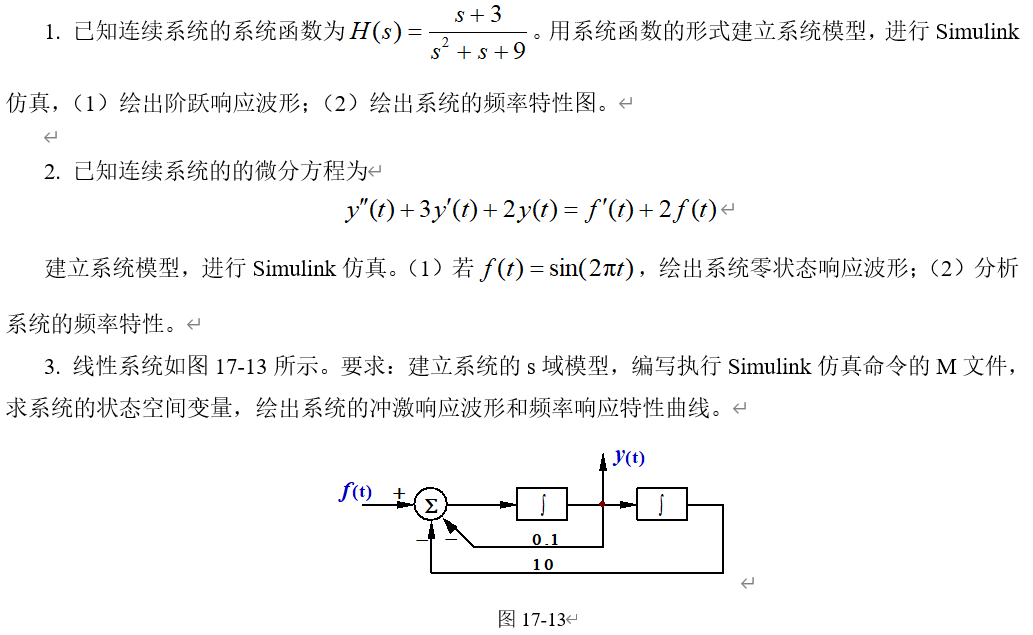 2. 掌握连续系统时域响应、频域响应的Simulink仿真方法。