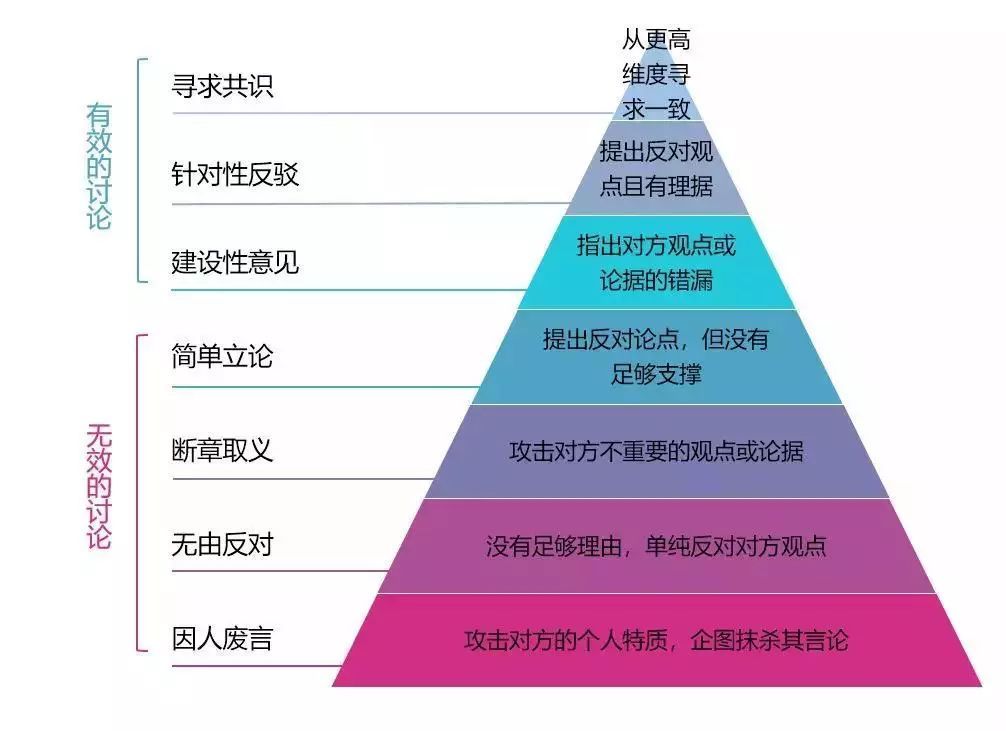 - 第6级到第7级:这种才是「有效的讨论」,是真的在交换意见,有含金量,值得认真对待。