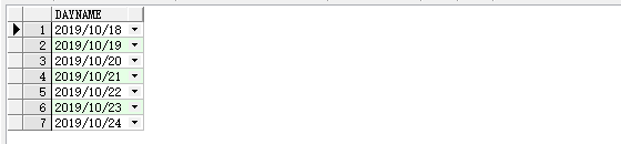 SELECT (TRUNC(SYSDATE - 6) + ROWNUM - 1) AS DAYNAME FROM DUAL CONNECT BY ROWNUM <= 7