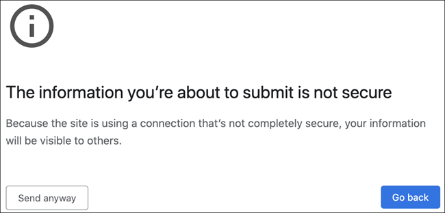 如果你无视提示警告继续提交表单信息,则会看到一个确认警告页面,告知你即将提交的信息并不安全。