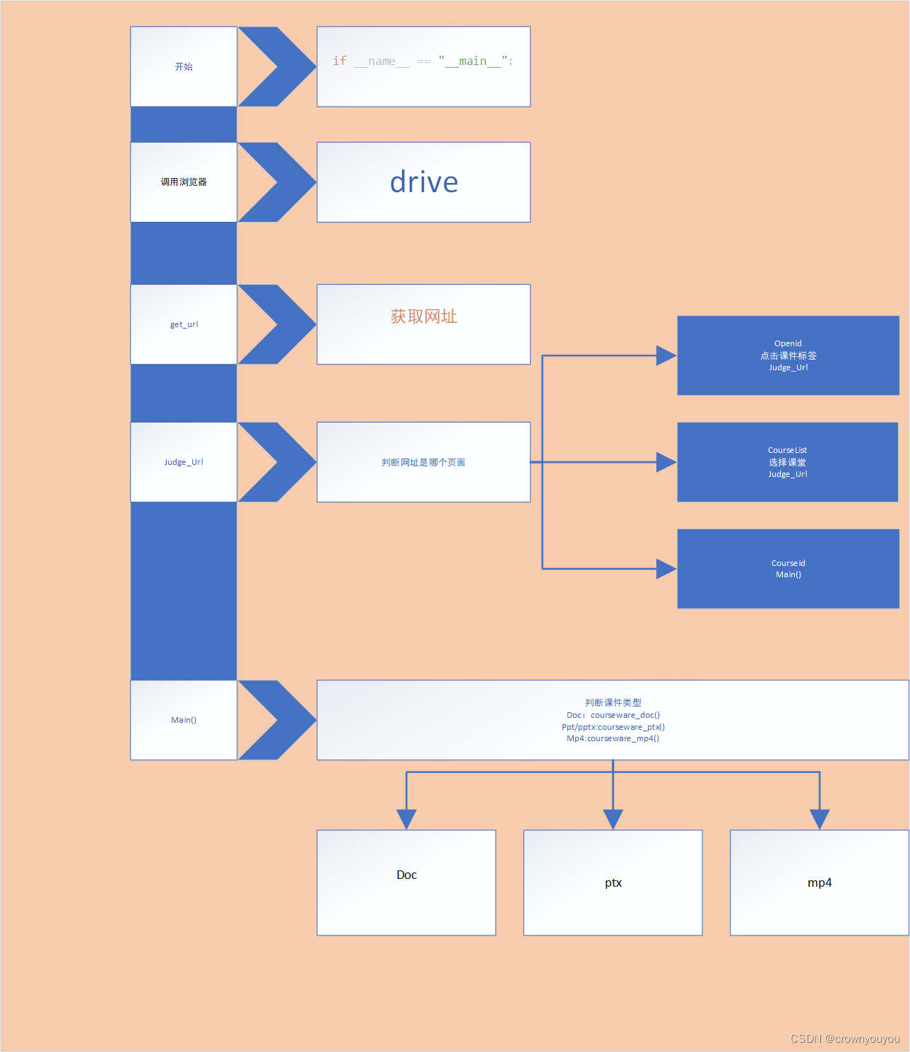 from selenium.webdriver.support.wait import WebDriverWaitdef get_url():return easygui.enterbox("请输入链接", default="")def judge_Url(driver):url = driver.current_urlif 'coursewareinfo' in url: # 如果界面是课件列表print("等待加载3秒")time.sleep(3)main(driver) # 进入主函数elif 'courseListForCourseware' in url: # 如果界面是课堂列表print("等待加载4秒")time.sleep(4) # 暂停4秒courseList = driver.find_elements(By.CLASS_NAME, '_3dYlgmbXq9p-8xwwf_goNT')a = 1for courseName in courseList:print(a, courseName.text) # 输出课堂名称a += 1course_Number = easygui.enterbox("请输入需要进入的课堂名称(数字)", default="")if int(course_Number) in list(range(1, 50)): # 判断输入的数字是否正常courseList_Number = [int(course_Number)]courseid_url = driver.find_element(By.XPATH, f'//*[@id="root"]/div/div/div[1]/a{courseList_Number}').get_attribute('href')course_name = driver.find_element(By.XPATH, f'//*[@id="root"]/div/div/div[1]/a{courseList_Number}//div/div[2]/div[2]').textprint(f"正在进入{course_name}课件")driver.get(courseid_url)judge_Url(driver)else:print("输入的数字不对,请重新输入")judge_Url(driver)elif 'wechat2-ssr/?openid=' in url: # 界面是功能列表time.sleep(3)driver.find_element(By.CSS_SELECTOR, "#root > div > div > div > div.rJW5lmLc2mXYzA_raXkCX > div:nth-child(2) > div:nth-child(2) > a").click() # 选择点击课件标签print("点击课件标签...")judge_Url(driver)else:print("网址不对")print("网址中不包括courseid、courseListForCourseware、wechat2-ssr/?openid=")def courseware_mp4(driver):time.sleep(5)driver.find_element(By.CSS_SELECTOR, '.outter') # 选择点击MP4播放按钮while True:time_1 = driver.find_element(By.CSS_SELECTOR, ".current-time") # MP4开始时间time_2 = driver.find_element(By.CSS_SELECTOR, ".duration") # MP4结束时间print(time_1)if time_1 == time_2 and time_1 != '00:00':print(time_1, time_2)breakdriver.switch_to.parent_frame() # 切换页面driver.switch_to.default_content() # 跳转页面def courseware_ptx(driver):time.sleep(3)iframe = driver.find_element(By.CLASS_NAME, "._1a4S0yFBO4gZoRFvUkRkW6") # ptx 窗口driver.switch_to.frame(iframe)time.sleep(5)while True:start_page = driver.find_element(By.XPATH, '//*[@id="PageIndex"]') .text # 起始页ending_page = driver.find_element(By.XPATH, '//*[@id="PageCount"]').text # 结束页driver.find_element(By.CLASS_NAME, '.btm .btmRight') # 下一页time.sleep(0.5)if start_page == ending_page:for i in range(10):driver.find_element(By.CLASS_NAME, '.btm .btmRight').click()time.sleep(20)driver.switch_to.parent_frame() # 切换页面driver.switch_to.default_content() # 跳转页面breakdef courseware_doc(driver):time.sleep(10)driver.switch_to.parent_frame() # 跳转页面driver.switch_to.default_content() # 跳转页面def main(driver):time.sleep(2)print("等待加载2秒")try:courseware_type = driver.find_element(By.CLASS_NAME, '.dPphweSVDC1Hf6EnOO71w').text[-3:]print(12345)if courseware_type == 'mp4':courseware_mp4(driver)elif courseware_type == 'ppt' or courseware_type == 'ptx':courseware_ptx(driver)elif courseware_type == 'doc' or courseware_type == 'ocx':courseware_doc(driver)except:print("出BUG了")if __name__ == "__main__":options = webdriver.ChromeOptions()options.add_experimental_option('excludeSwitches', ['enable-automation']) # 添加实验性质的设置参数driver = webdriver.Chrome(options=options, executable_path='./chromedriver.exe')wait = WebDriverWait(driver=driver, timeout=10) # 设置最大等待时间url = get_url()driver.get(url)judge_Url(driver) # 判断是哪个界面main(driver)time.sleep(999)