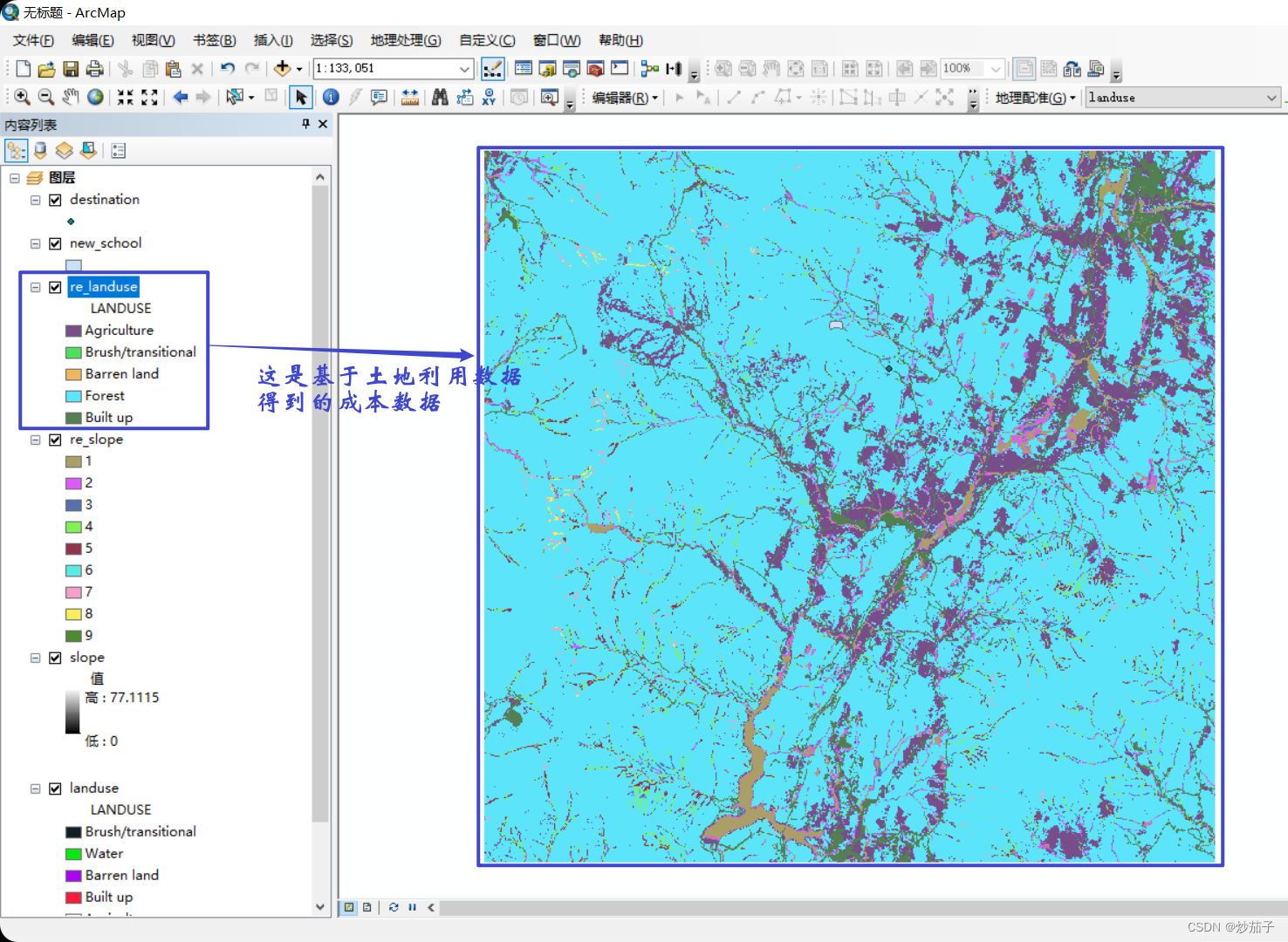土地利用数据的重分类结果展示: