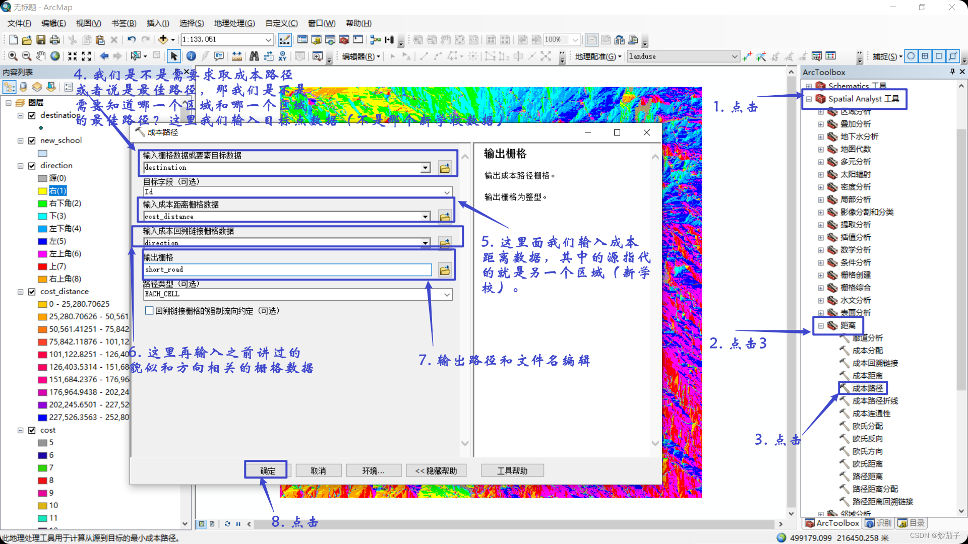 首先,我们采用成本距离分析工具;