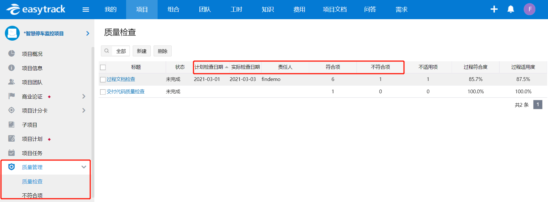 项目经理可根据需求,有针对性地在易趋系统做出质量管理计划,对关键阶段设置评审、交付物设置质量检查跟踪,提前预防,打造闭环质量管理。(详见图6)