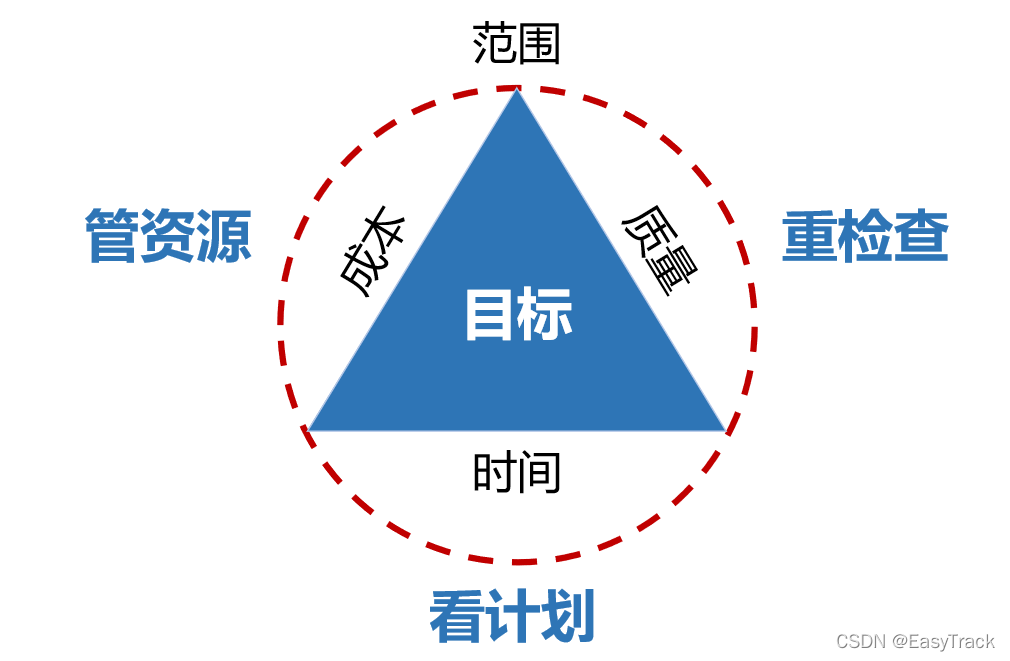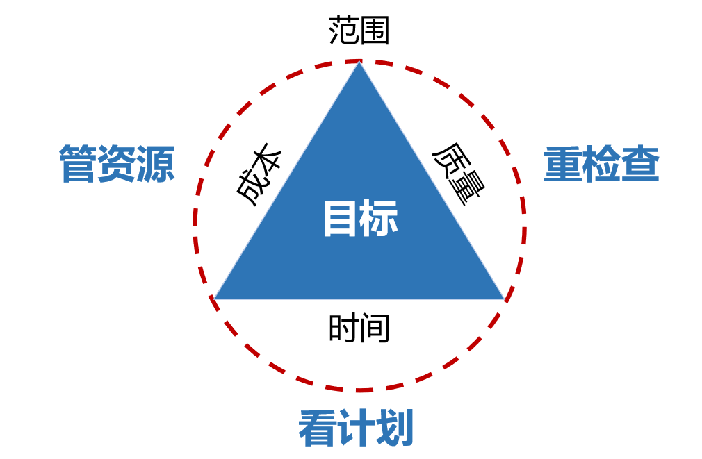 在项目管理中,一个经典的理论基础,就是项目管理的铁三角,而经典的项目管理铁三角,就包括时间、成本、质量这三要素。时间是指完成项目交付所需的时间以及确定每个任务的开始、结束时间;成本是指项目所需的资源,包含可量化的货币成本以及人力成本;质量是指项目交付物满足需求的程度,需对质量设置规范标准。