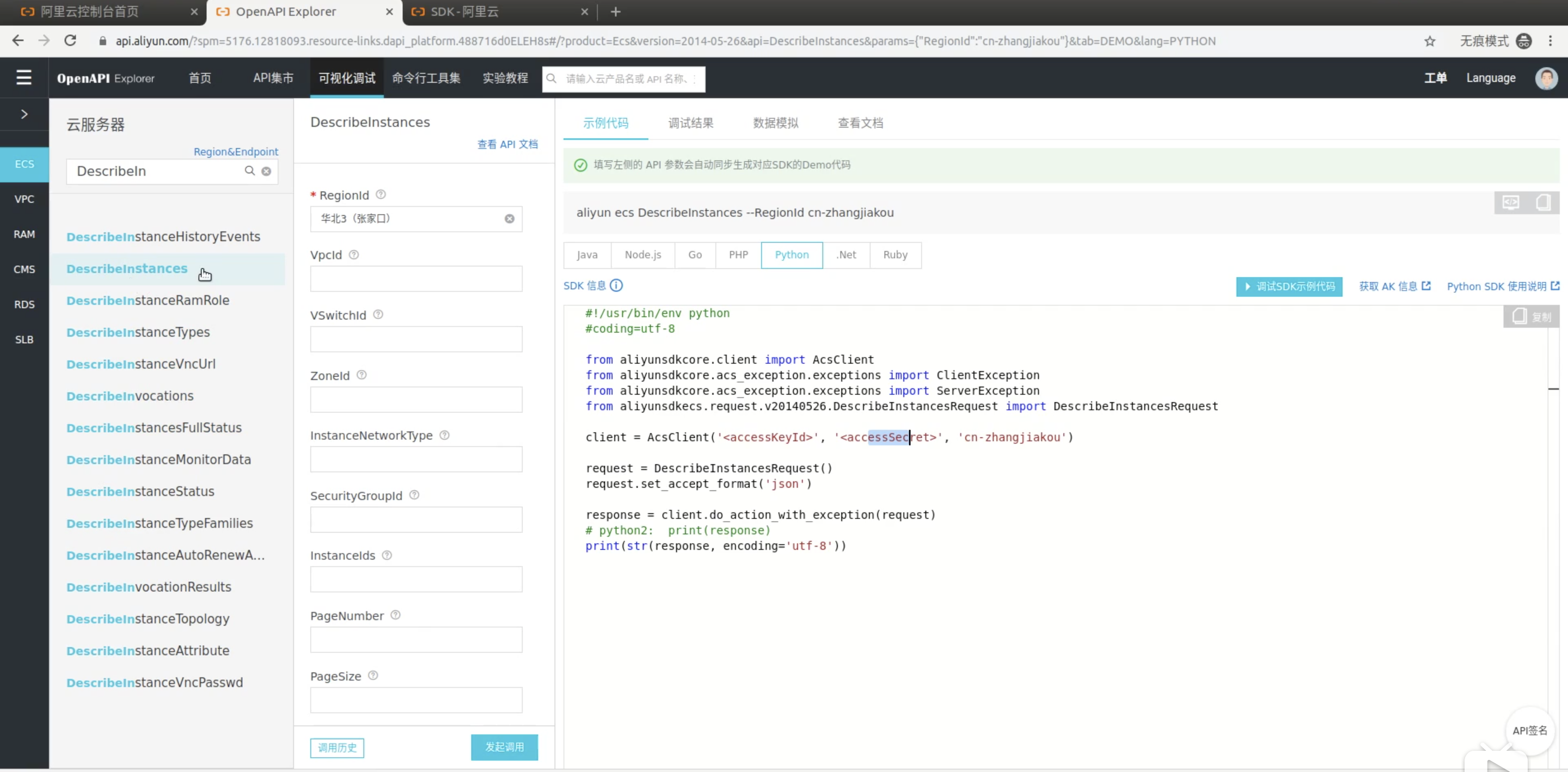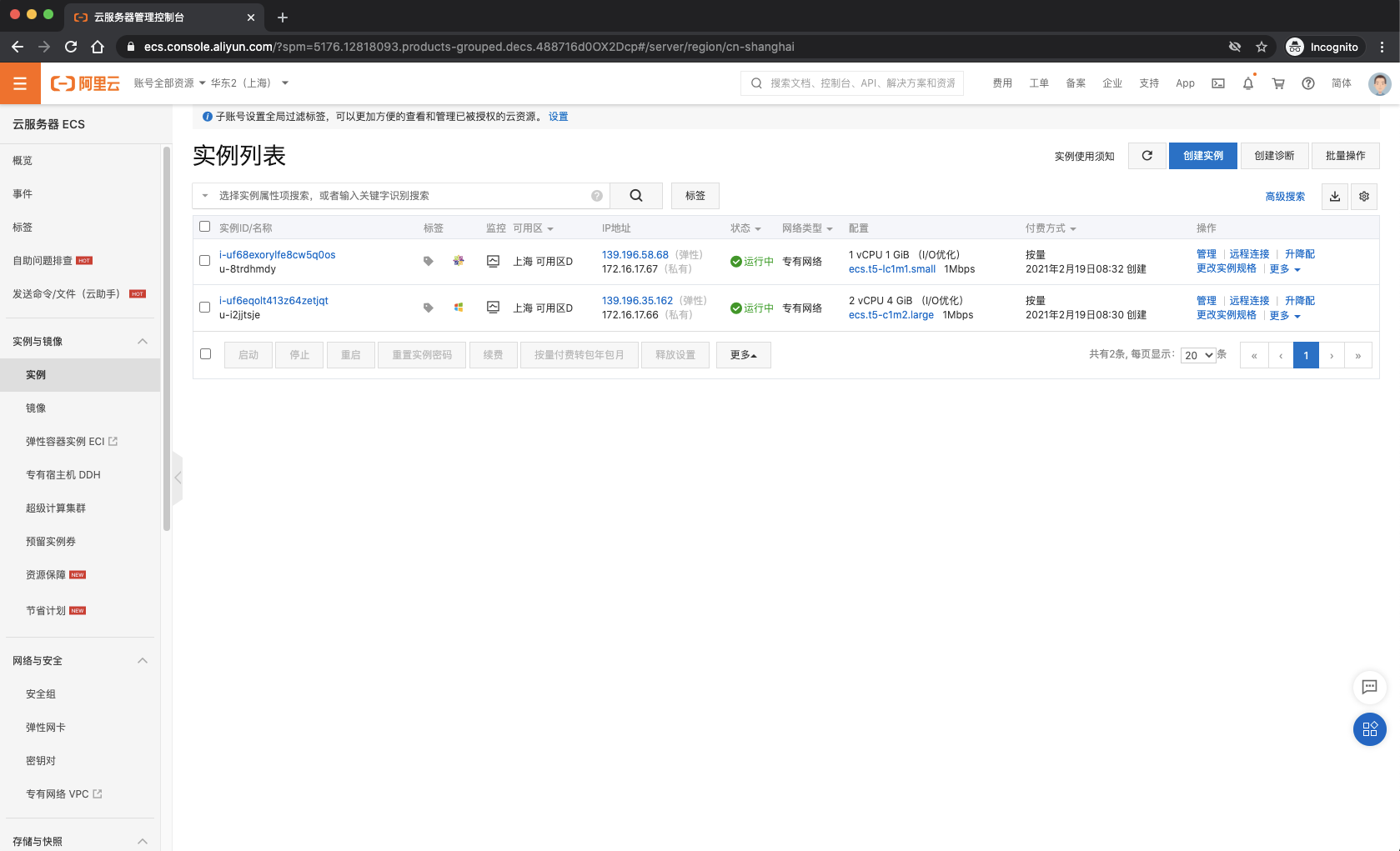 (2)使用阿里云控制台管理ECS实例