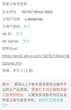(3)密码:该账号对应的密码,由 6~32 个字符的字母、数字、中划线或下划线组成,如 password4example。