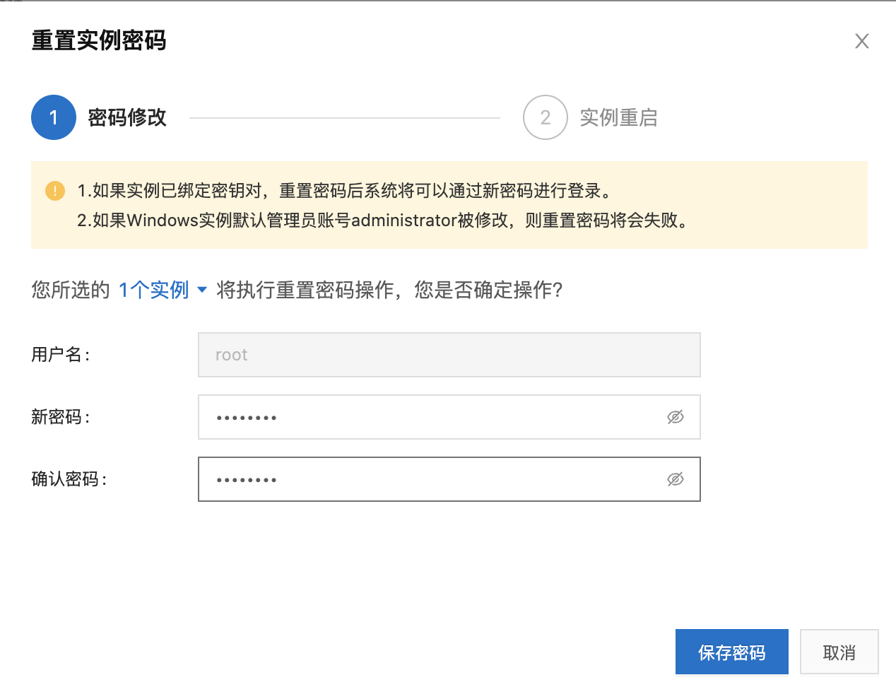 (4)重置ECS实例登录密码: