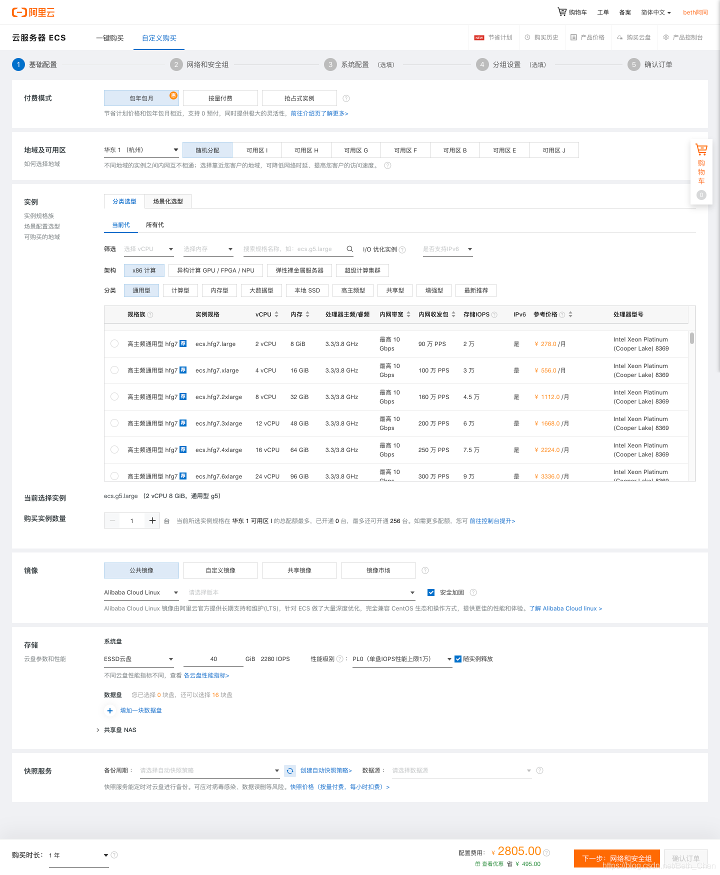 (4)选择实例规格: