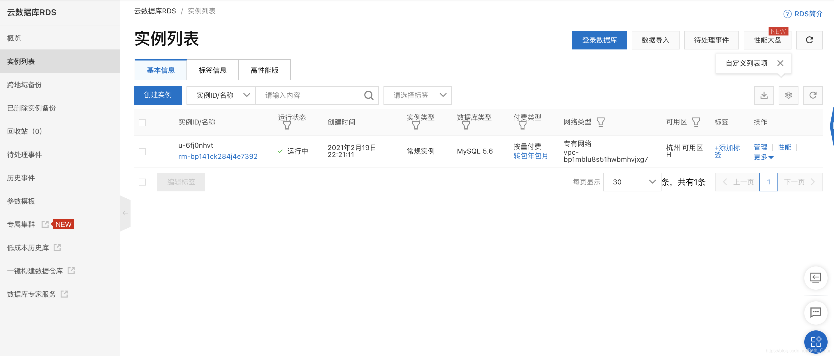 点击对应实例ID的“管理”: