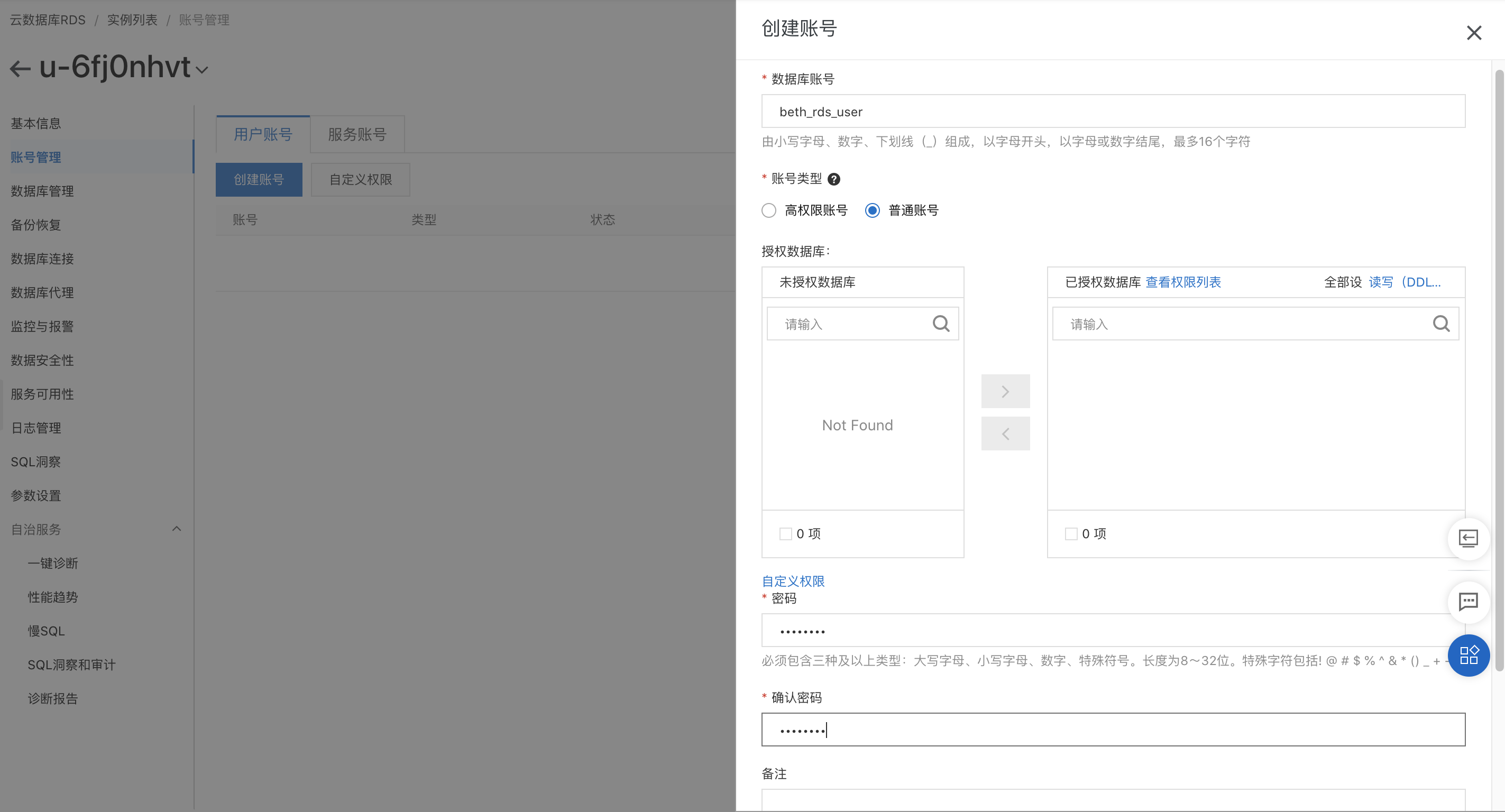 RDS 数据库账号