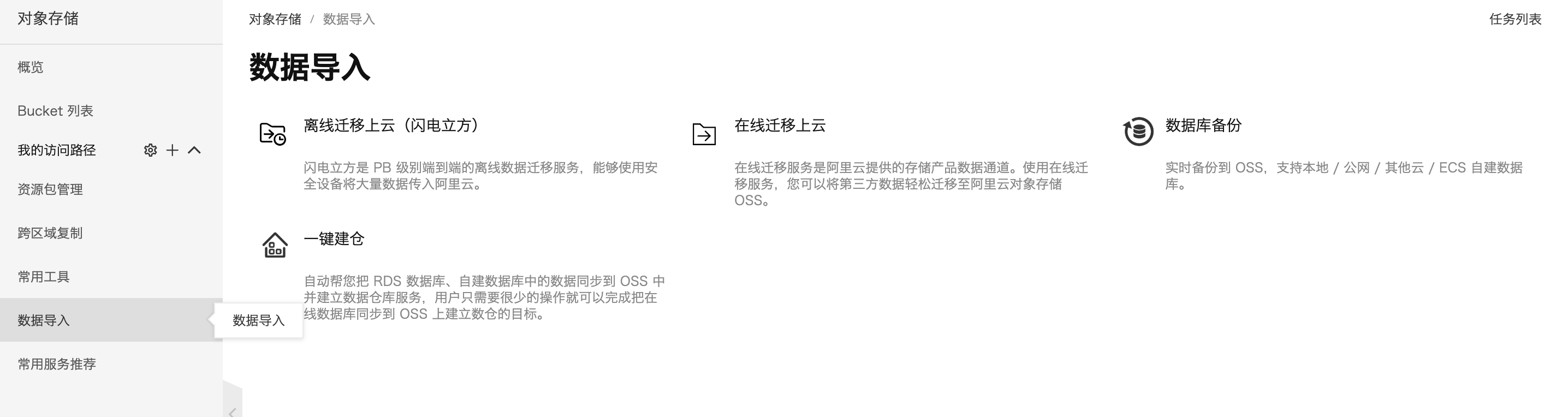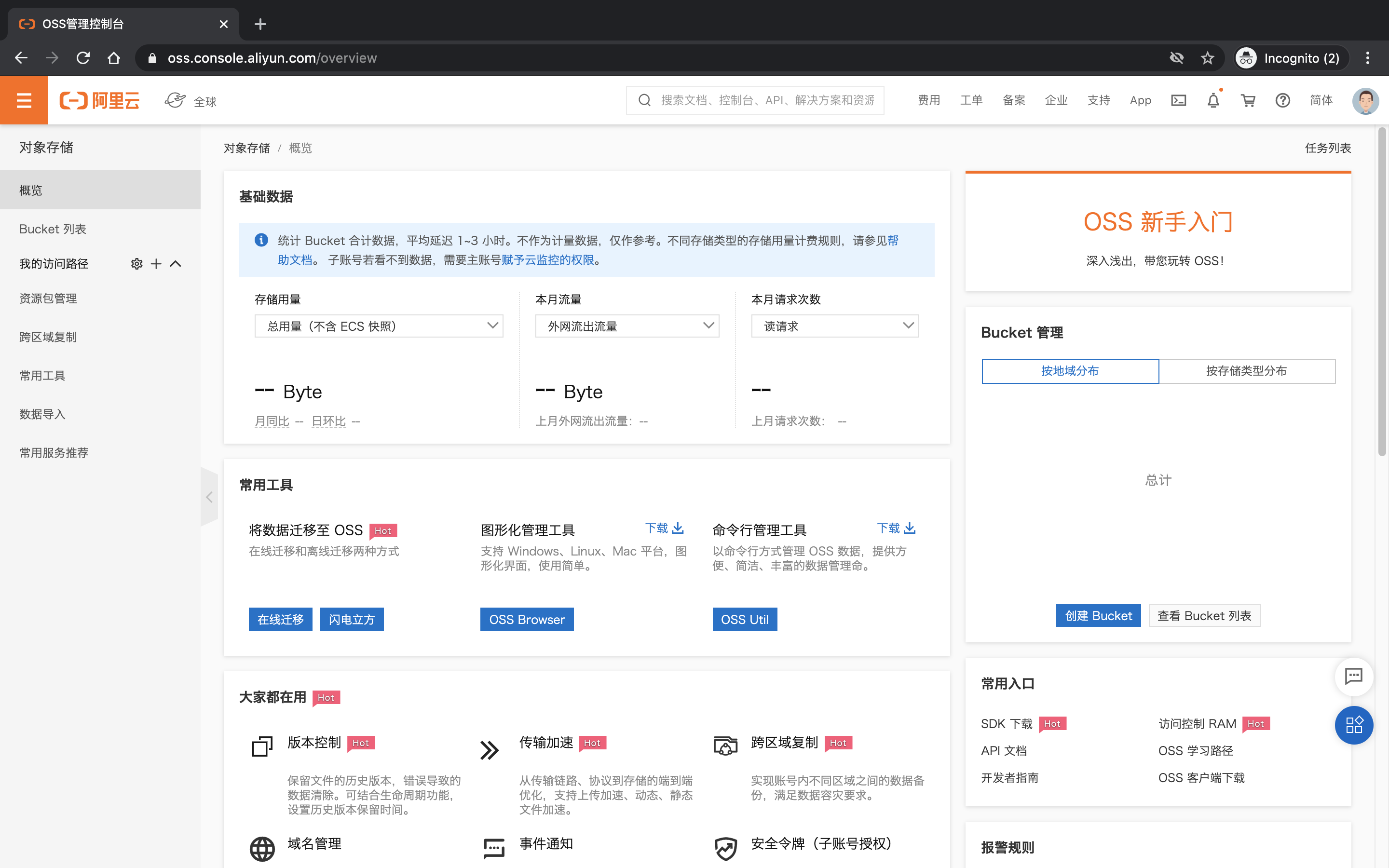 OSS对象存储主页: