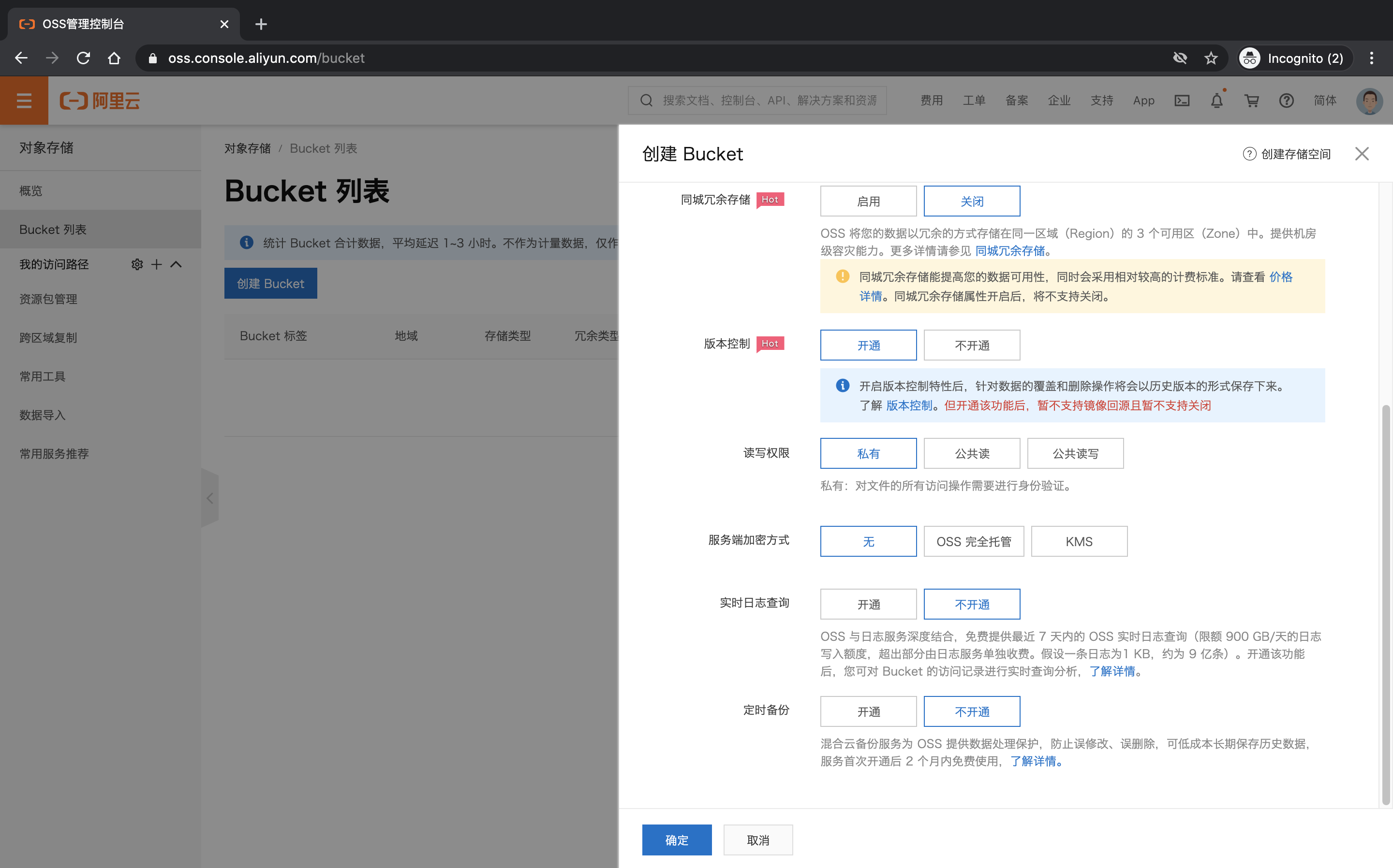 - 创建OSS Bucket