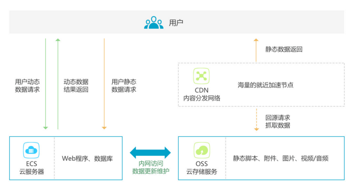 - 开发者不仅可以直接使用OSS,利用BGP带宽,实现超低延时的数据直接下载;OSS也可以配合阿里云CDN加速服务,为图片、音视频、移动应用更新分发,提供最佳体验等场景。