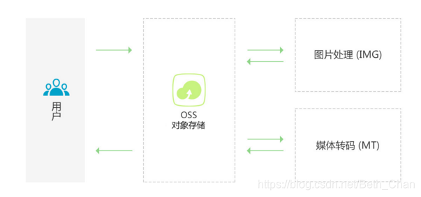 - 上传文件到OSS后,可以配合媒体转码服务(MTS),图片处理服务(IMG)进行云端的数据处理。