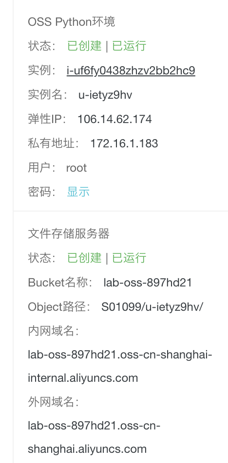 - 查看OSS环境