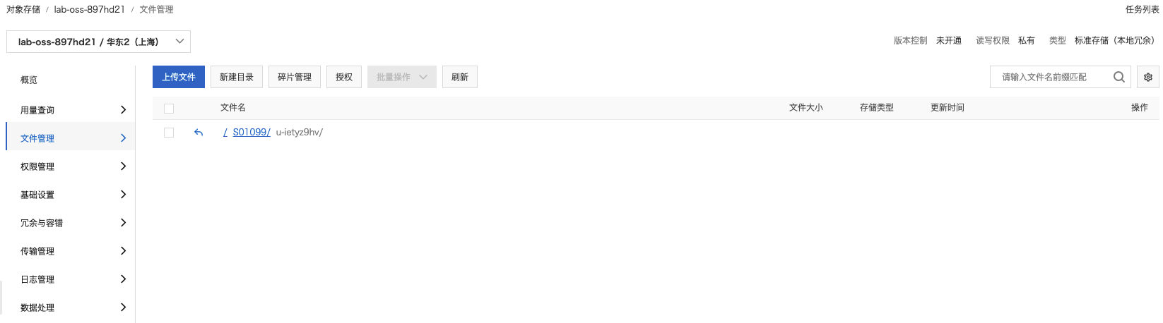 OSS 上传方式分为两类:简单上传和分块上传;其中,简单上传由于不支持断点续传,适合用于上传小文件;而分块上传支持断点续传,适合上传比较大的文件,一般超过100MB 的文件都推荐使用分块上传。下面将本地的小文件上传到本次上图Object路径中。