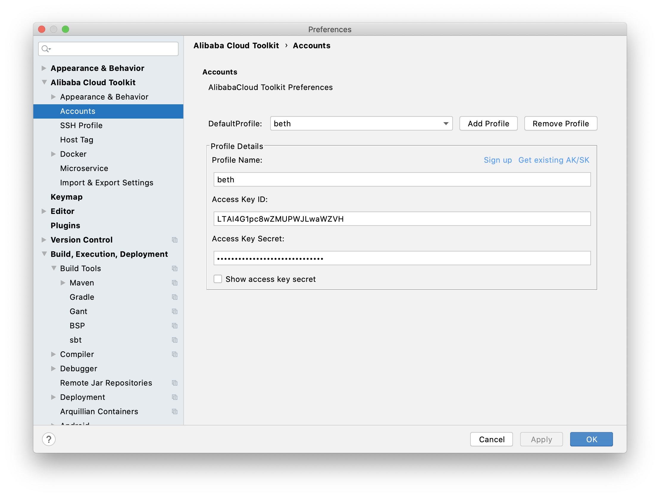 - 在 IntelliJ IDEA 工具栏单击 Tools > Alibaba Cloud > Preferences… 。