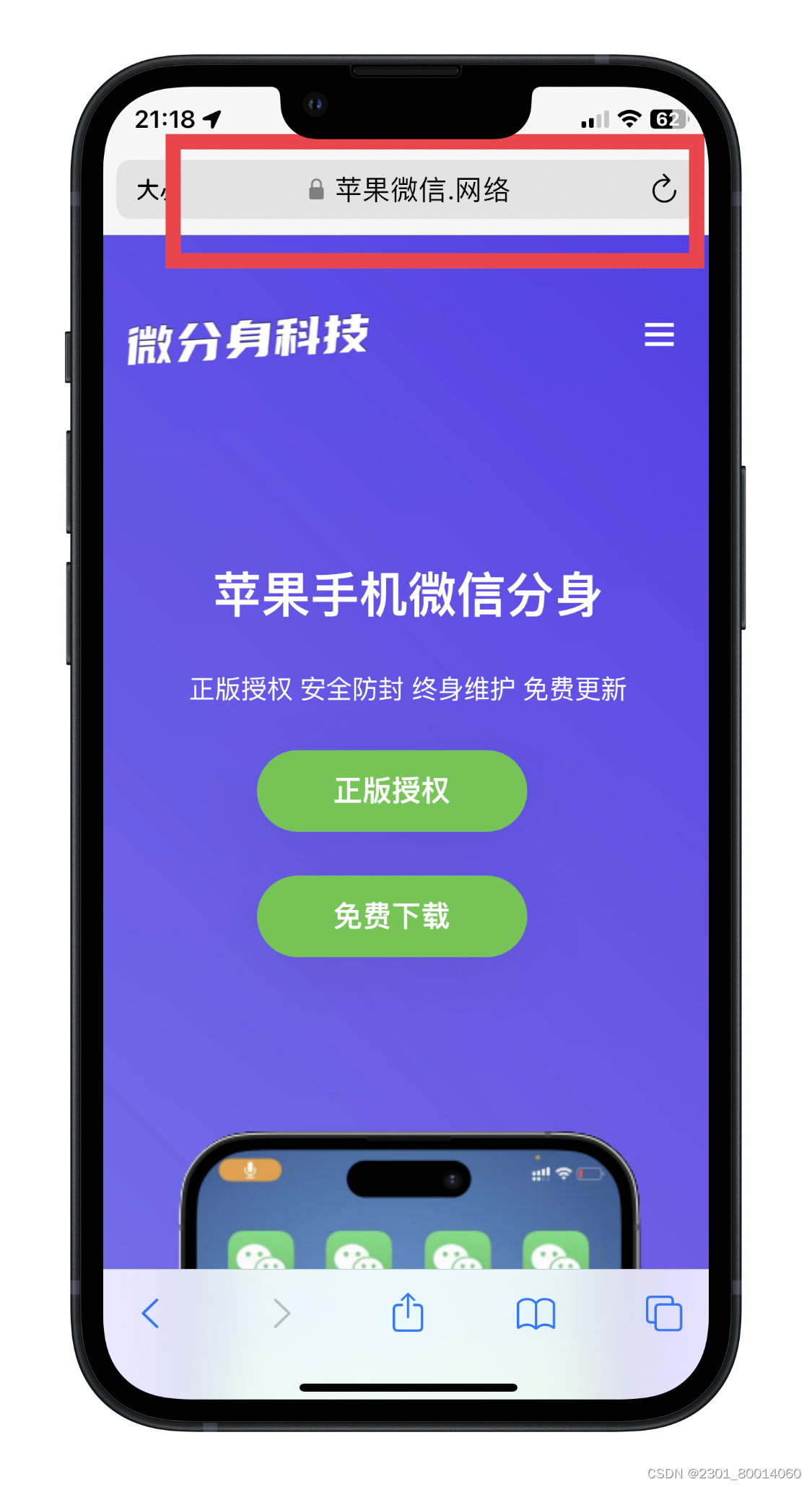 步骤一:首先找到Safari浏览器里访问地址【苹果微信.网络】,如下图